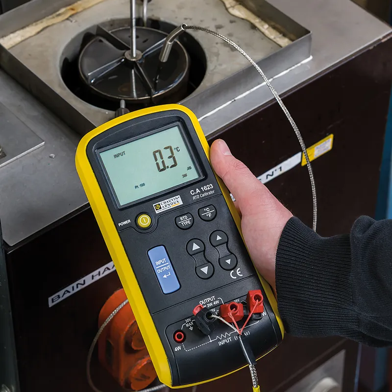 Der Kalibrator für Widerstandsfühler ist kompakt und einfach zu verwenden. Er kann Messungen und Simulationen an bis zu 7 Messfühler-Typen und an einem Widerstand durchführen.