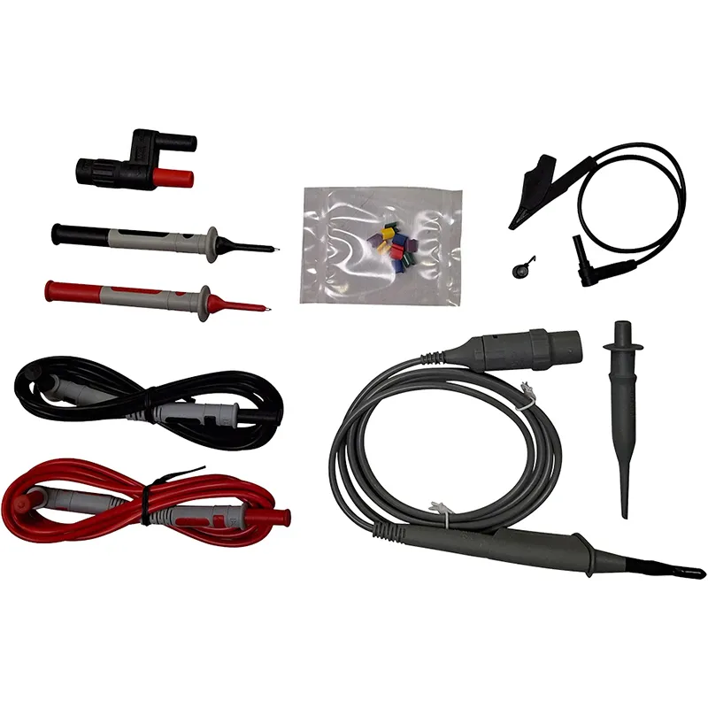 Geliefert mit: 1 Euro-Netzkabel, 2 Tastköpfe mit umschaltbarem Teilerverhältnis 1:1 und 1:10, 1 USB-Kabel Typ A und B, 1 CD-ROM mit PC-Software und Bedienungsanleitung