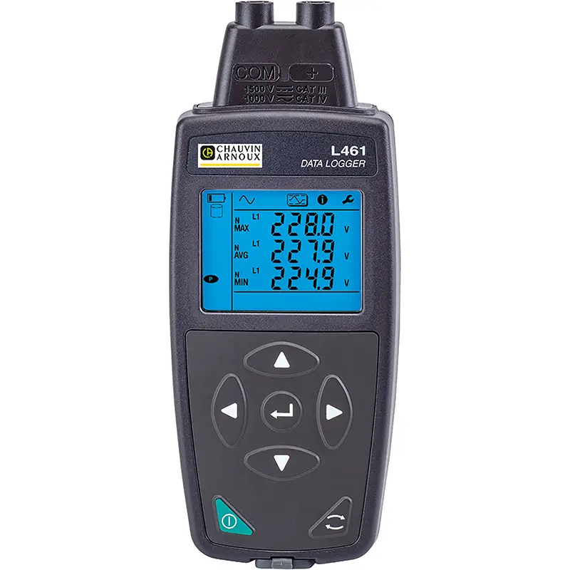 Der Chauvin Arnoux Datenlogger L412 ist ein leistungsstarkes und vielseitiges Messgerät zur Aufzeichnung von Stromverläufen. Durch seine zwei Messkanäle und Kompatibilität mit einer breiten Palette an Stromwandlern eignet er sich optimal zur Wartung, Fehlersuche und Überwachung von Strömen. Robust, mobil und einfach zu bedienen – ideal für den industriellen Einsatz sowie für Anwendungen im Bereich der Elektroinstallation. Durch die Aufzeichnungen mit Zeitstempelung ist dieser Logger bestens für die Erkennung von Schwankungen oder Anomalien im gemessenen Signal geeignet. Die verschiedenen Kommunikationsmöglichkeiten ermöglichen den Einsatz des Datenloggers als fernablesbares Strommessgerät. Über den integrierten Webserver besteht die Möglichkeit mit einem Smartphone über einen beliebigen Webbrowser eine Fernverbindung zum Gerät herzustellen. Die Analyse der aufgezeichneten Ereignisse wird mit der Software Datalogger Transfer vereinfacht: Gerätekonfiguration, Echtzeitüberwachung der Messungen und Darstellung der aufgezeichneten Messungen in grafischer oder tabellarischer Form.