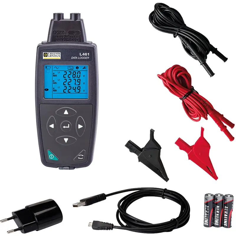 Der Chauvin Arnoux Datenlogger L461 ist ein leistungsstarkes und vielseitiges Messgerät zur Aufzeichnung von Spannungsverläufen. Er eignet sich optimal zur Wartung, Fehlersuche und Überwachung von Spannungen. Robust, mobil und einfach zu bedienen – ideal für den industriellen Einsatz sowie für Anwendungen im Bereich Photovoltaik und Elektroinstallation. Durch die Aufzeichnungen mit Zeitstempelung ist dieser Logger bestens für die Erkennung von Schwankungen oder Anomalien im gemessenen Signal geeignet. Die verschiedenen Kommunikationsmöglichkeiten ermöglichen den Einsatz des Datenloggers als fernablesbares Spannungsmessgerät. Über den integrierten Webserver besteht die Möglichkeit mit einem Smartphone über einen beliebigen Webbrowser eine Fernverbindung zum Gerät herzustellen. Die Analyse der aufgezeichneten Ereignisse wird mit der Software Datalogger Transfer vereinfacht: Gerätekonfiguration, Echtzeitüberwachung der Messungen und Darstellung der aufgezeichneten Messungen in grafischer oder tabellarischer Form.