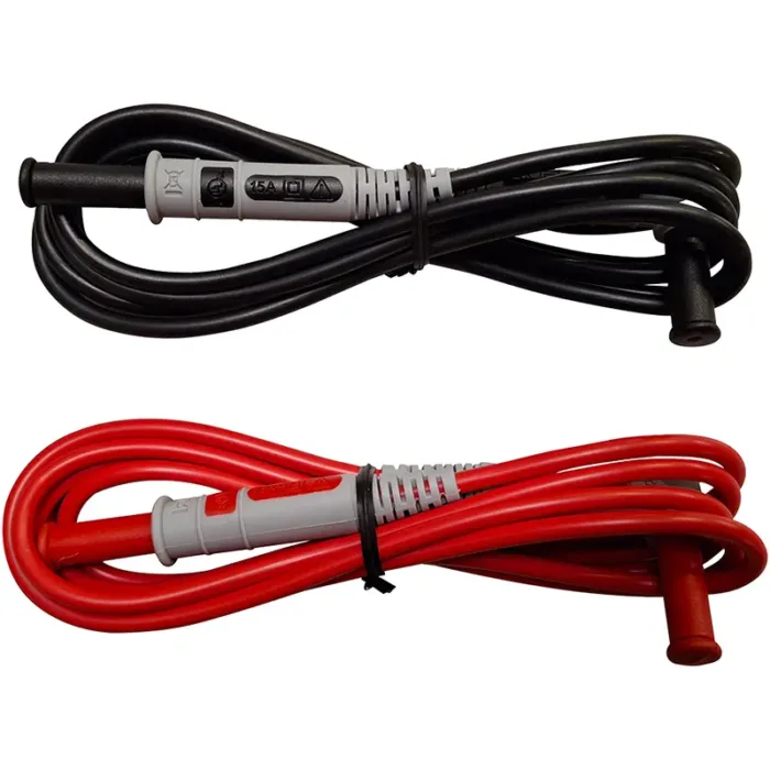 Ummantelte Messleitungen aus PVC. Gerader Stecker Ø 4 mm isoliert – Winkelstecker Ø 4 mm isoliert. 15 A. 1,5 m Länge. 1000 V CAT IV