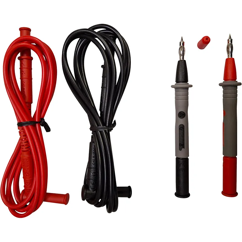 Satz von 2 Messleitungen mit 4mm ger/Winkel Stecker + 2 Prüfspitzen 4mm – rot+sw