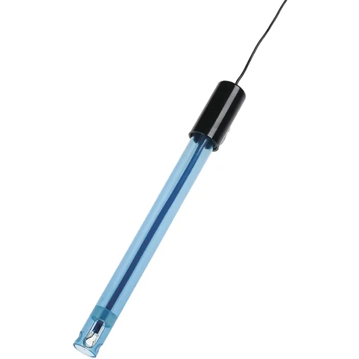 – Es handelt sich um einen durch einen PVC-Körper geschützten und damit robusteren Glasstab, dessen unteres Ende mit einem Metallstück, in diesem Fall einem Platinstab, versehen ist. Wobei der Platinstab ebenfalls in einem PVC-Körper untergebracht ist, um Bruch zu vermeiden.